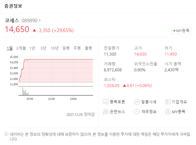 오늘은 2021년 12월 29일 수요일 급등주에 대해 글을 써보겠습니다.